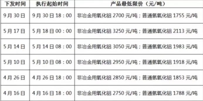 中國粉體網(wǎng)訊 據(jù)業(yè)內(nèi)人士消息,2019年中鋁非冶金用氧化鋁最低限價一覽如下: