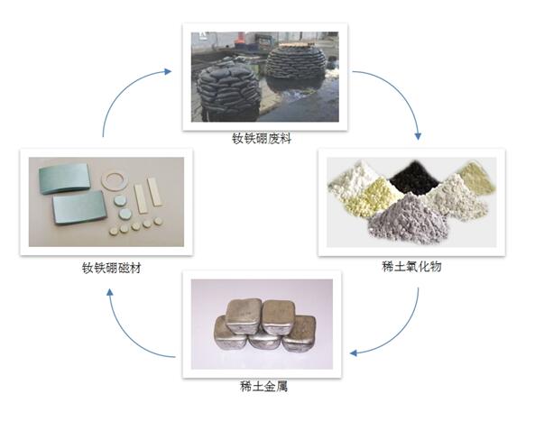 釹鐵硼永磁材料廣泛地應(yīng)用于冶金、化工、材料、航空航天、通訊、電子、汽車等國(guó)民經(jīng)濟(jì)的各個(gè)領(lǐng)域。由于目前的生產(chǎn)工藝及設(shè)備等限制因素,釹鐵硼永磁材料在生產(chǎn)和加工過程中,會(huì)產(chǎn)生30%左右的廢料;在運(yùn)輸方面,由于釹鐵硼廢料具有磁性,不能高空運(yùn)輸,只能集中收集和處理,這加大了釹鐵硼廢料回收的難度。