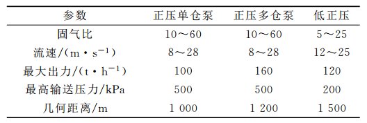 密相氣力輸送系統(tǒng)的參數(shù)應(yīng)用范圍