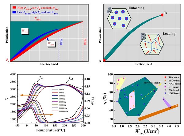以上研究結果表明BNT基鐵電陶瓷在鐵電體高功率脈沖技術和介質儲能電容器等方面具有潛在的應用前景。相關研究得到國家自然科學基金、上海市自然科學基金、中科院青年創新促進會、中國工程物理研究院院長基金的支持。