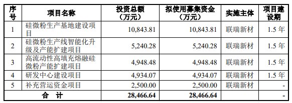另外,公司招股說明書顯示,聯(lián)瑞新材擬募集資金共計2.85億元,用于硅微粉生產(chǎn)基地建設項目、硅微粉生產(chǎn)線智能化升級及產(chǎn)能擴建項目、高流動性高填充熔融硅微粉產(chǎn)能擴建項目、研發(fā)中心建設項目、補充營運資金項目。