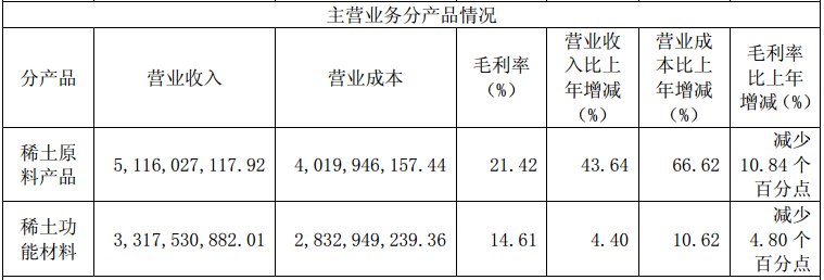 2018年,公司實現(xiàn)營業(yè)收入139.55億元,同比增長36.76%,創(chuàng)歷史新高;實現(xiàn)歸屬于上市公司股東的凈利潤5.84億元,同比增長45.46%。主要原因是公司鐠釹產(chǎn)品銷量增加、貿(mào)易收入增加以及出售了稀土礦石。
