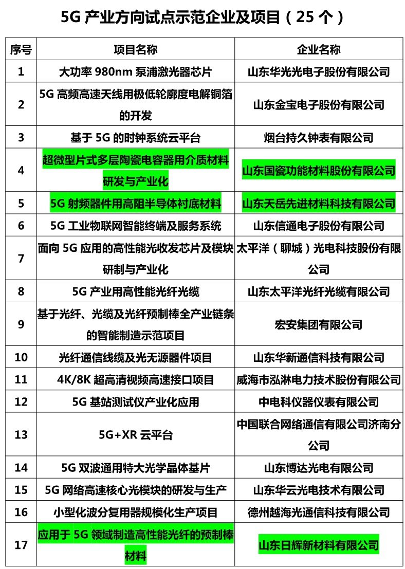 中國粉體網訊 近日,山東省工信廳發布公告稱,為貫徹落實《山東省人民政府辦公廳關于加快5G產業發展的實施意見的通知》,推動山東省5G產業發展,加快構建具有山東特色的5G產業生態體系,省工信廳開展了5G試點示范企業及項目遴選工作,經各地市工信局及相關行業協會推薦,山東省工業和信息化廳組織專家評審論證,國瓷材料、山東天岳、日輝新材料等入選5G產業方向試點示范企業。