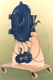 物料由加料口加入上筒體旁的回轉閥門輸送入分級室。在水平安裝的轉子旁分散、分級。粗粉甩至筒壁處向下移動在風柵處受二次空氣作用及中心管的一次空氣吹送。細粉再次脫離粗粉被送至轉子處進行分級,最終粗粉向下移動,由下筒體上的回轉閥排出機外,細粉穿過轉子葉片的間隙由排氣管送出機外,在捕集器中尾氣由風機放至大氣。