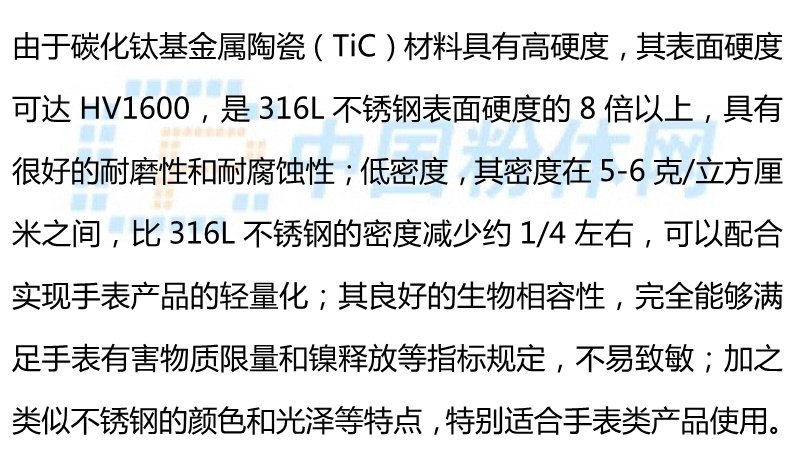總體而言,目前國際知名手表品牌所使用的陶瓷材料大多集中于氧化鋯陶瓷(ZrO2)和碳化鈦基金屬陶瓷(TiC)材料,瑞士各大品牌手表研發和應用新材料的技術路線和市場戰略一以貫之,配合改進和提高產品性能令品牌知名度和市場占有率持續提高壯大。