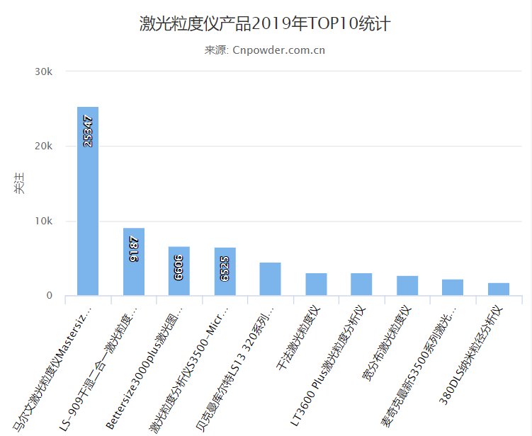 中國粉體網訊 【編者按】粉體裝備是粉體工業的脊梁,中國粉體產業升級的關鍵之一就在于裝備的發展水平。目前從全球來看,粉體裝備行業呈現出智能化、成套化、個性化、服務化、綠色化等發展特征。作為國內領先的粉體工業互聯網平臺,中國粉體網依托旗下電子商務平臺——“網上粉體展”積累了大量的行業數據,在歲末年初之際,中國粉體網編輯特將粉體行業部分專用設備及儀器的市場應用、相關產品及供應商的關注度等信息分享給讀者,以供參考。今天我們關注的是激光粒度儀。