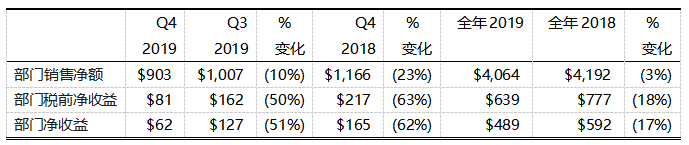 據(jù)公司預計,相較于2019年第一季度強勁的項目支出,該業(yè)務部門2020年第一季度銷售額預計同比下降約25%。