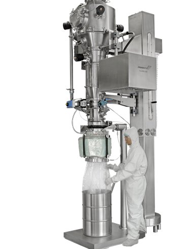 這條生產線可以實現將從上游設備如干燥機中出料的大塊、團聚的物料粉碎、篩分然后定量給料并最終分裝。由Frewitt設計制造的Profilling分裝系統可以一次性滿足上述所有需求,并可以快速的適應于任何生產環境中。粉碎最細可達50μm,可以采用粉碎系統或者專門的定量給料系統進行給料。分裝模塊適用于各種不同形狀材質的容器,精度可達±10g。