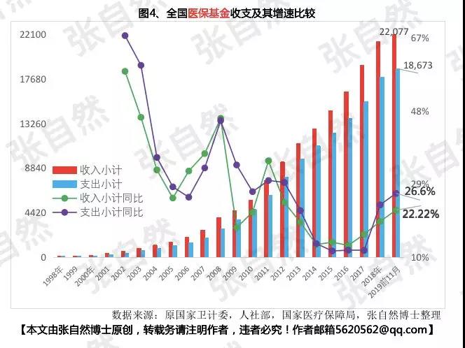 6、醫;I資增速仍趕不上支出增速, 2019年前11個月醫保收入為22077億元,支出為18673億元,收入增速22.22%仍較支出增速26.6%落后4.4個百分點(圖4)。