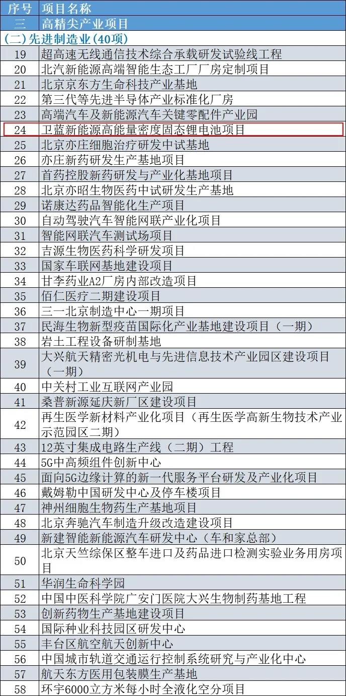 中國粉體網訊 2020年2月20日,北京市委常委會審議通過了《關于本市2020年固定資產投資調控思路及市政府投資和重點工程計劃安排建議》,衛藍新能源高能量密度固體鋰電池項目被列為2020年北京市高精尖重點產業項目。