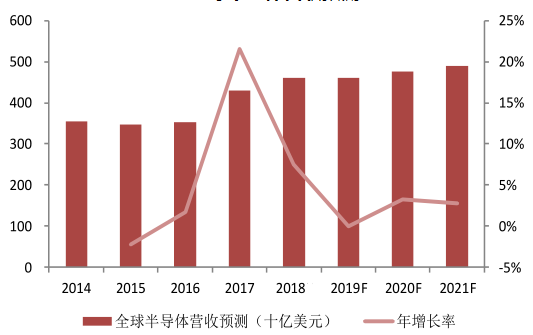 近年來,隨著物聯(lián)網(wǎng)、區(qū)塊鏈、汽車電子、無人駕駛、5G、AR/VR及AI等多項創(chuàng)新應(yīng)用發(fā)展,半導(dǎo)體行業(yè)保持高景氣度。根據(jù)HIS Markit的統(tǒng)計,2017年全球半導(dǎo)體市場營收規(guī)模為4290億美元,而近年來預(yù)計維持在3%左右的年增長率。