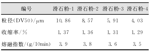 進(jìn)一步的研究證明:滑石粉粒徑越小,滑石粉/聚丙烯復(fù)合材料的收縮率越小,熔融指數(shù)越小。