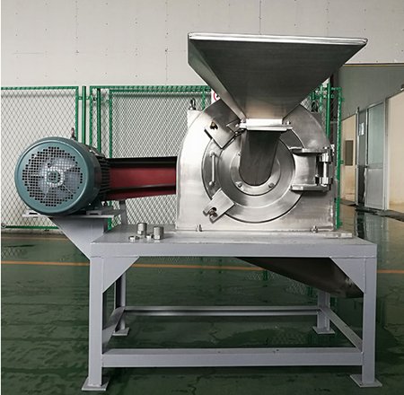 本粉碎機上裝有固定齒盤,固定齒盤上裝有兩圈帶齒輪的固定齒圈。主軸上裝有活動齒盤,活動齒盤上裝有活動牙齒;顒育X盤上的活動牙齒與固定齒圈相互交錯排列,當主軸高速運轉時,活動齒盤也同時運轉,物料拋進榔頭間的間隙,在物料與齒盤彼此間的相互沖擊、剪切、摩擦等綜合作用下獲得粉碎。成品經篩網過篩后,由粉碎室進入收集袋,粗料繼續(xù)粉碎。本機結構新穎、運轉平穩(wěn)、噪音相對較小、產量高。