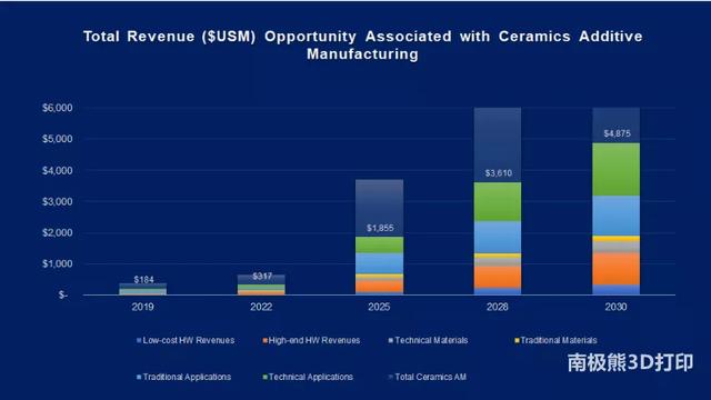 中國(guó)粉體網(wǎng)訊 2020年4月26日,南極熊獲悉,SmarTech分析公司發(fā)布了最新的陶瓷快速成型制造(AM)市場(chǎng)報(bào)告《陶瓷快速成型零件生產(chǎn):2019-2030年》。該報(bào)告認(rèn)為,即便是目前的情況下,到2030年,陶瓷增材制造市場(chǎng)的收入估計(jì)將達(dá)到48億美元。此外,報(bào)告認(rèn)為,無(wú)論是技術(shù)型還是傳統(tǒng)型的最終零件,都將在中長(zhǎng)期內(nèi)推動(dòng)這些機(jī)會(huì)。