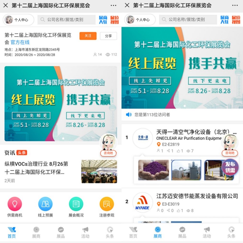 據(jù)了解,CEEF 2020上海化工環(huán)保展線上展覽將于5月1日正式上線,第一批企業(yè)已經(jīng)成功入駐。主辦方將免費為每家展商提供一個線上展位,用于網(wǎng)上展示、客戶邀約、個性請柬等線上展示服務(wù),為展商創(chuàng)建最佳線上宣傳溝通渠道,全面實現(xiàn)上中下游展前、展中、展后的零距離互動、交流、供需對接!入駐企業(yè)可以對接聚貿(mào)平臺全球客戶資源,擴寬銷售渠道,提升品牌知名度,實現(xiàn)線上線下資源互動,助力參展企業(yè)線下現(xiàn)場和線上展會雙向成交。