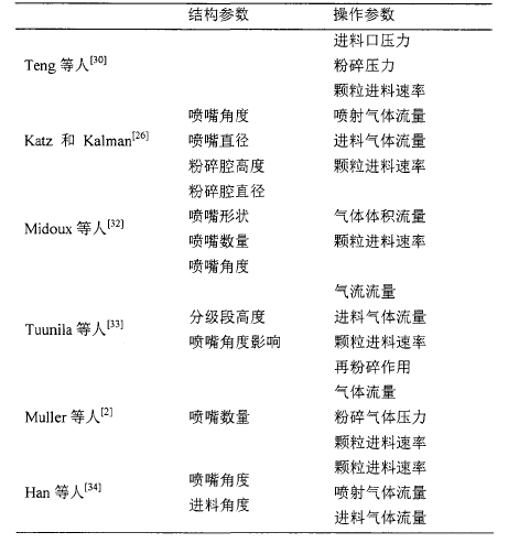 相關氣流粉碎機文獻中描述的結構參數和操作參數