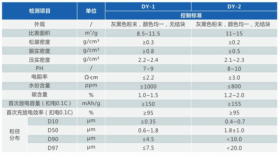 貝特瑞磷酸鐵鋰產(chǎn)品的理化指標