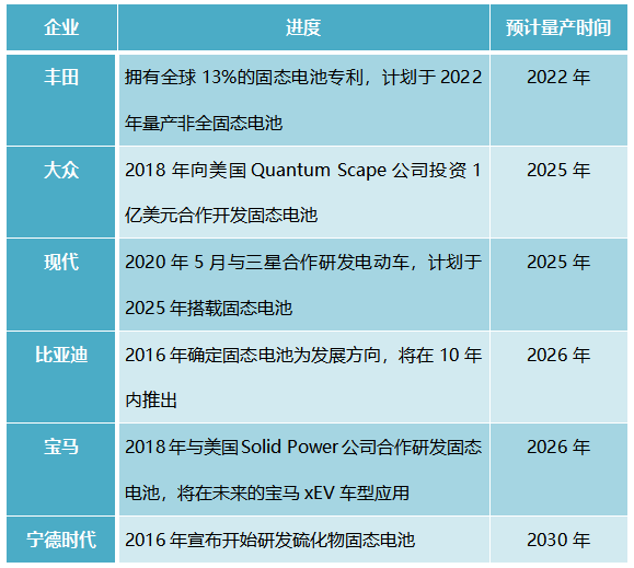 各企業(yè)在固態(tài)電池領(lǐng)域研發(fā)進(jìn)展