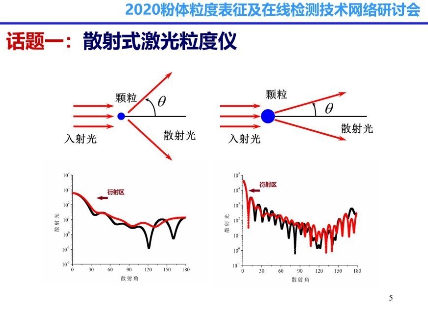 在報告中,沈教授向我們深入淺出的介紹了散射式激光粒度儀的原理、發(fā)展與應(yīng)用,并從原理出發(fā)介紹了影響散射式激光粒度儀檢測效果的幾點重要因素。其中,沈教授著重介紹了“散射式激光粒度儀粒徑測量上下限”和“散射信號異常”兩個核心問題并對激光粒度儀和篩分進行比較。