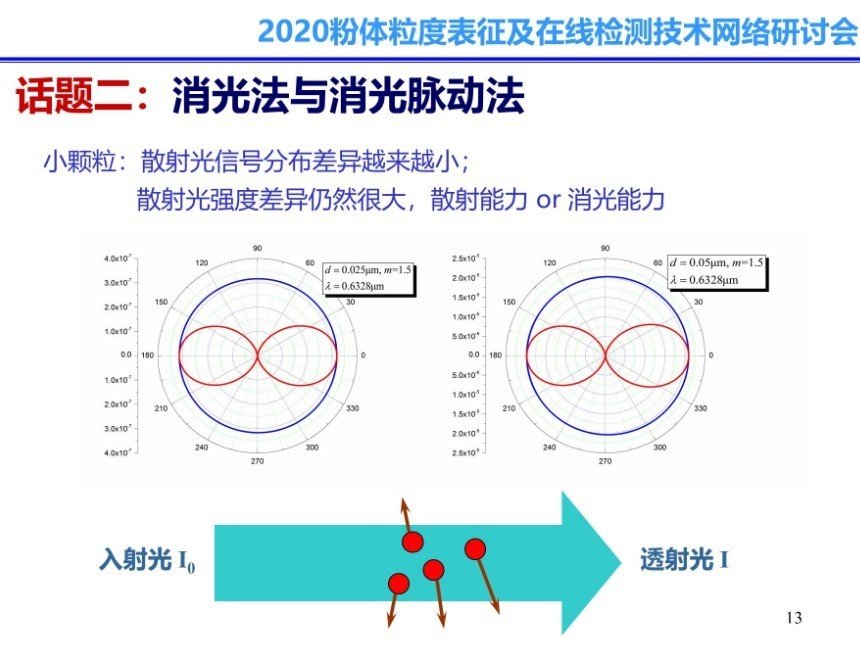 在顆粒檢測中,常用的顆粒檢測方法有篩分法、沉降法(重力沉降、離心沉降)、電感應(yīng)法、顯微鏡法、光散射法和超聲法幾種,其中光散射法因其較高的實用性和較好的檢測效果受到廣泛歡迎。本次報告,沈建琪教授主要從三個方面展開:一、散射式激光粒度儀的原理及應(yīng)用;二、消光脈動法和消光脈動頻譜法原理及應(yīng)用;三顆粒檢測技術(shù)與CCD成像技術(shù)的結(jié)合檢測原理及應(yīng)用。
