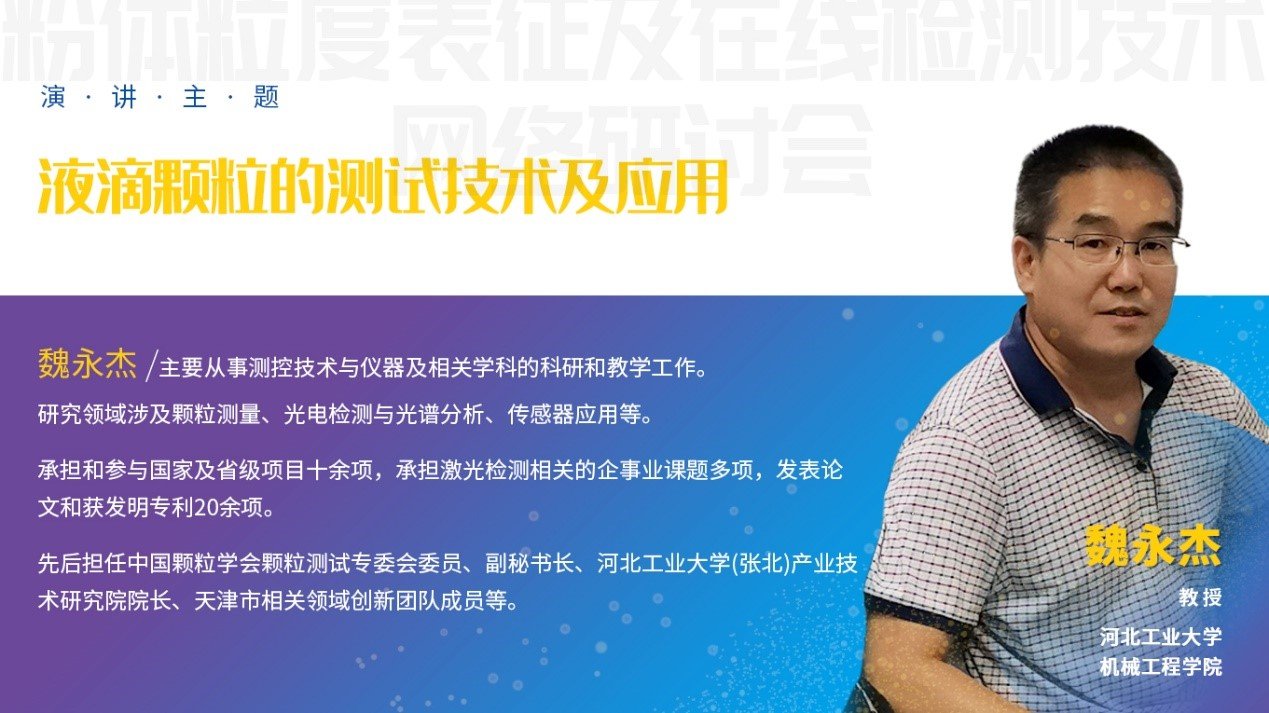 中國粉體網(wǎng)訊  2020年7月3日,由中國粉體網(wǎng)聯(lián)合中國顆粒學(xué)會顆粒測試專委會、北京粉體技術(shù)協(xié)會共同舉辦的“粉體粒度表征及在線檢測技術(shù)網(wǎng)絡(luò)研討會”成功召開,本次網(wǎng)絡(luò)研討會邀請來自河北工業(yè)大學(xué)的魏永杰教授作《液滴顆粒的測試技術(shù)與應(yīng)用》報告。