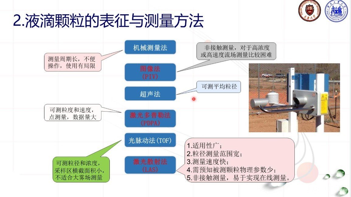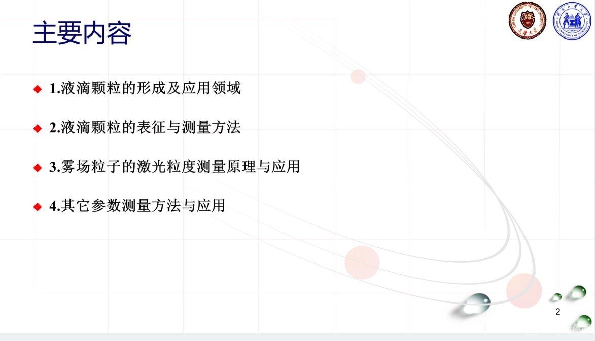 本次報告魏永杰教授主要從液滴顆粒的形成及應(yīng)用領(lǐng)域、液滴顆粒的表征和測試方法、霧場粒子的激光粒度測量原理與應(yīng)用、其他參數(shù)測量方法與應(yīng)用四個方面展開。