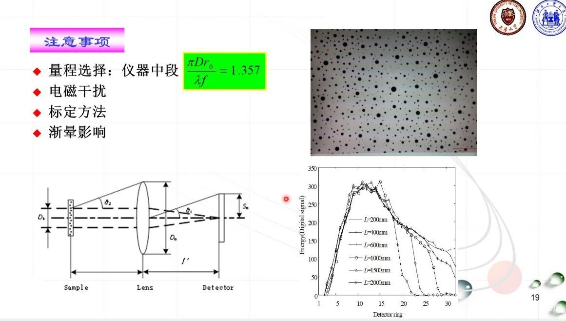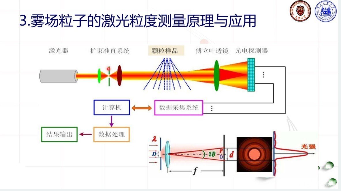 報告中,魏永杰教授重點介紹了霧場粒子的激光粒度測量技術(shù),在報告中,魏教授通過對激光粒度測量原理進(jìn)行了深入介紹,同時針對激光粒度測量技術(shù)在霧場顆粒中的應(yīng)用,魏教授對激光粒度測量過程中所涉及的深層數(shù)學(xué)邏輯和物理原理進(jìn)行了深入分析,此外魏教授提醒測量時應(yīng)該注意如下事項:量程選擇、電磁干擾、標(biāo)定方法、漸暈影響。