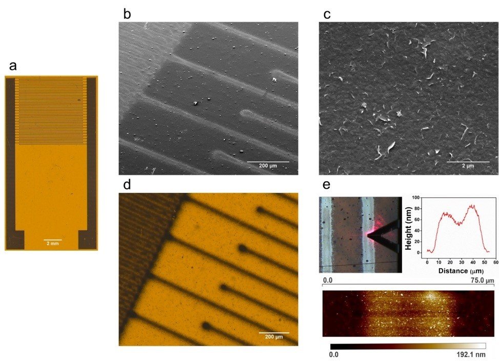 a)在聚酰亞胺(Kapton®)薄片上以IDE模式噴印石墨烯;