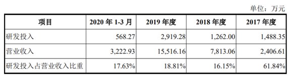 天科合達自成立以來,一直以技術研發驅動公司發展,報告期內研發投入分別為1,488.35萬元、1,262.00萬元、2,919.28萬元和568.27萬元,占同期營業收入的比例分別為61.84%、16.15%、18.81%和17.63%,其中2017年由于公司營收規模較低,因此研發投入占比較高