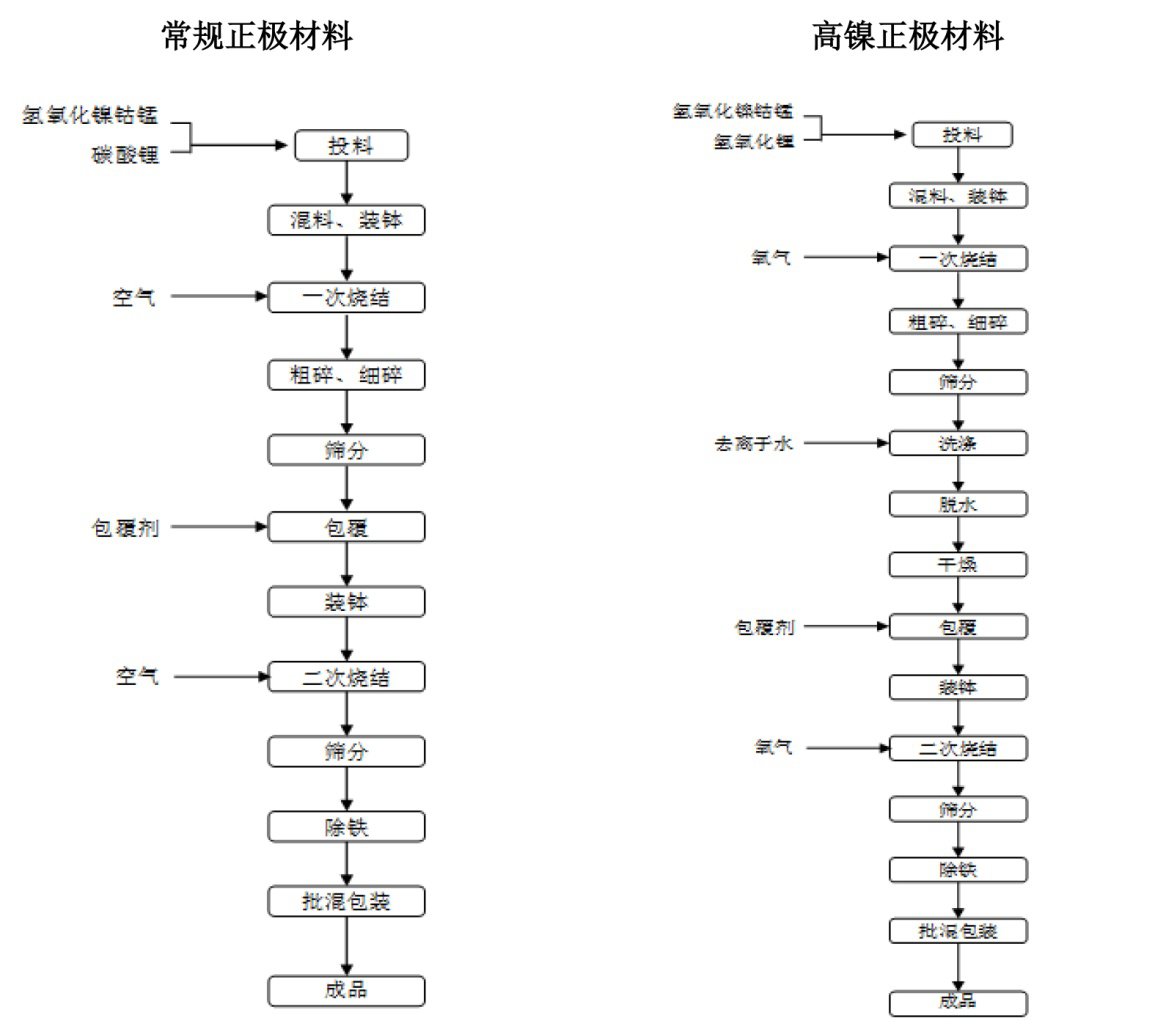 兩家企業都致力于普通三元正極材料和高鎳三元正極材料的研發、生產和銷售。來看一下它們的生產工藝。