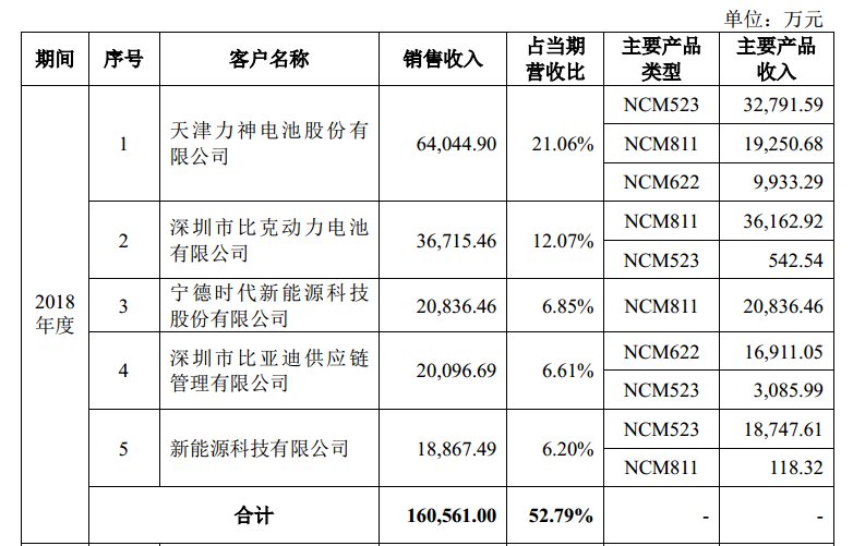 容百科技2018年前五大客戶