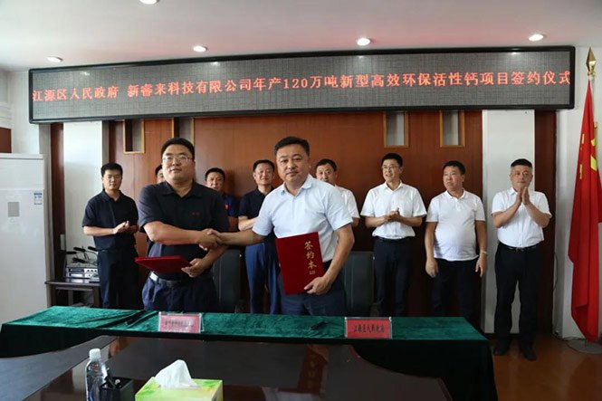中國粉體網訊 8月10日,江源區年產120萬噸新型高效環保活性鈣項目簽約儀式在區委常委會議室舉行。