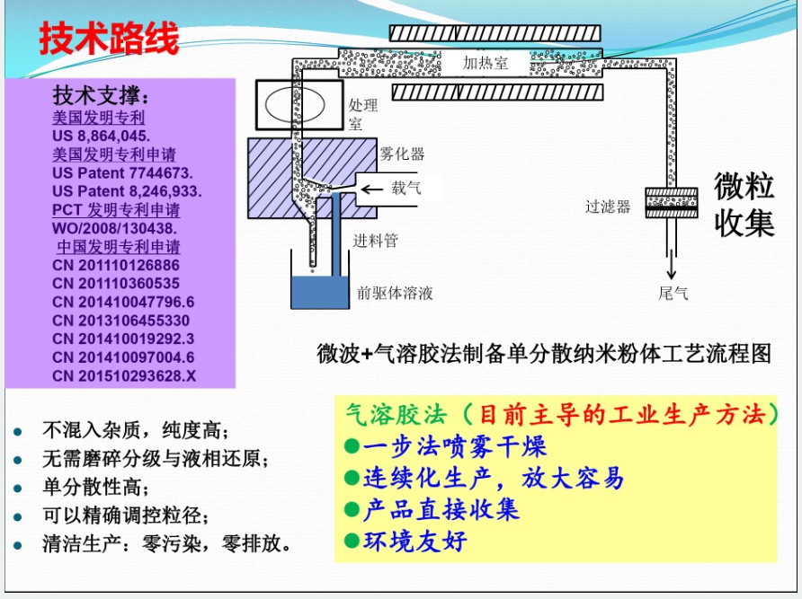 姜教授首先簡單的概述了納米球形顆粒的幾種不同的制備方法,他表示正在做的產業化工作之一是氣溶膠法生產高性能納米金屬、氧化物,此方法的特點是一步法噴霧干燥;連續化生產,放大容易;產品直接收集;對環境友好。他還分享了納米金屬及納米氧化物的市場情況。