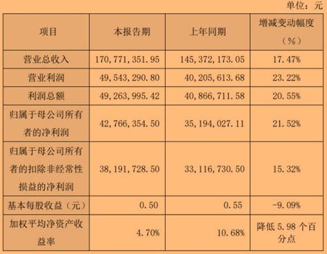 8月10日,聯(lián)瑞新材(688300)近日發(fā)布2020年半年度業(yè)績快報公告,公告顯示,報告期內營業(yè)總收入為170,771,351.95元,比上年同期增長17.47%;歸屬于上市公司股東的凈利潤為42,766,354.50元,比上年同期增長21.52%。