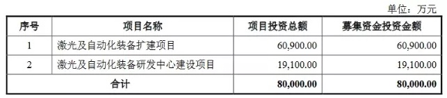 海目星本次募集的資金為8億元,全部用于與公司主營業務相關的項目。