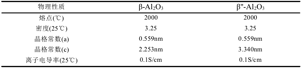 β/β"-Al2O3的物理性質(zhì)