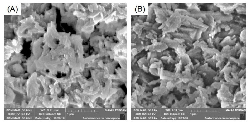 勃姆石(γ-AlOOH)為鋁源,不同溫度固相合成鎂穩(wěn)定β"-Al2O3粉末掃描電鏡圖:(A)1200℃;(B)1300℃