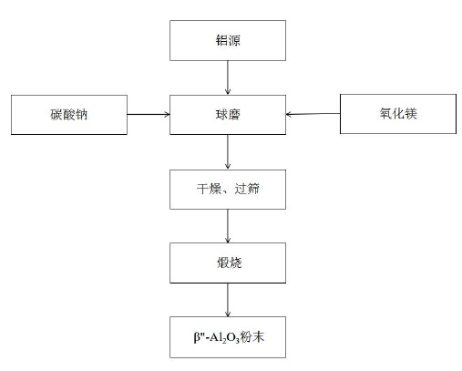 固相法合成β"-Al2O3粉末流程圖