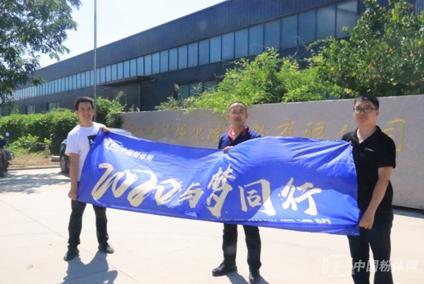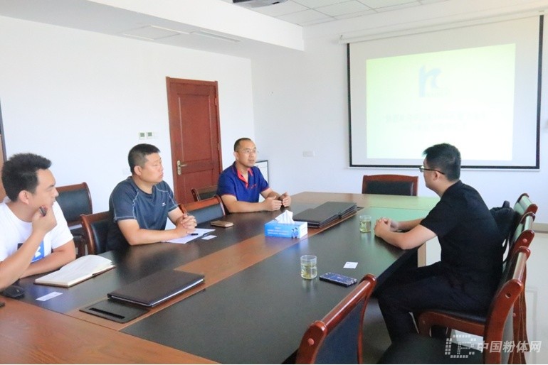 中國粉體網(wǎng)會展部經(jīng)理孔德宇與濰坊凱華總經(jīng)理辛國棟、銷售經(jīng)理王強(qiáng)等交流
