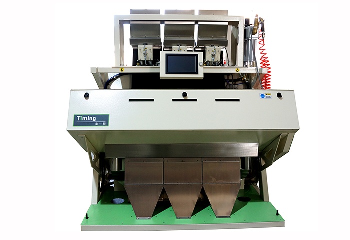 礦石色選機選出率指從原糧中選出的雜質數量占所含雜質總量的百分數,也叫色選精度。影響選出率的因素主要有流量和色選機的型號即性能來決定。一般來講,采用CCD方式的要高于硅光電池方式的,采用復選結構的要好于單選結構的。配置CCD傳感器技術的復選色選機選出率可以達到99%以上,而配置傳統傳感器的一次色選的普通色選機在實際生產中很難達到標定的指標.另外,選出率的高低也受帶出比高低的的影響。