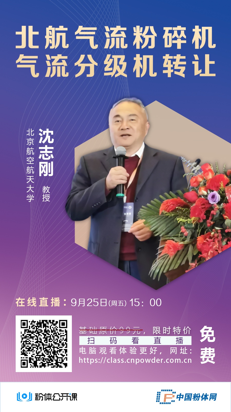 現(xiàn)在,好消息來(lái)了!2020年9月25日15:00,航天大學(xué)沈志剛教授將做客中國(guó)粉體網(wǎng)旗下直播平臺(tái)粉體公開(kāi)課,轉(zhuǎn)讓JFC系列氣流粉碎機(jī)、氣流分級(jí)機(jī)的專利,具體內(nèi)容包含JFC系列氣流粉碎機(jī) 、氣流分級(jí)機(jī)出讓等相關(guān)問(wèn)題,包含全部加工圖紙與技術(shù)說(shuō)明,負(fù)責(zé)指導(dǎo)為轉(zhuǎn)讓企業(yè)生產(chǎn)加工一套合格相關(guān)、提供國(guó)外相關(guān)企業(yè)技術(shù)等。機(jī)不可失,把握住機(jī)會(huì),JFC系列氣流粉碎機(jī)、分級(jí)機(jī)專利技術(shù)就屬于你!