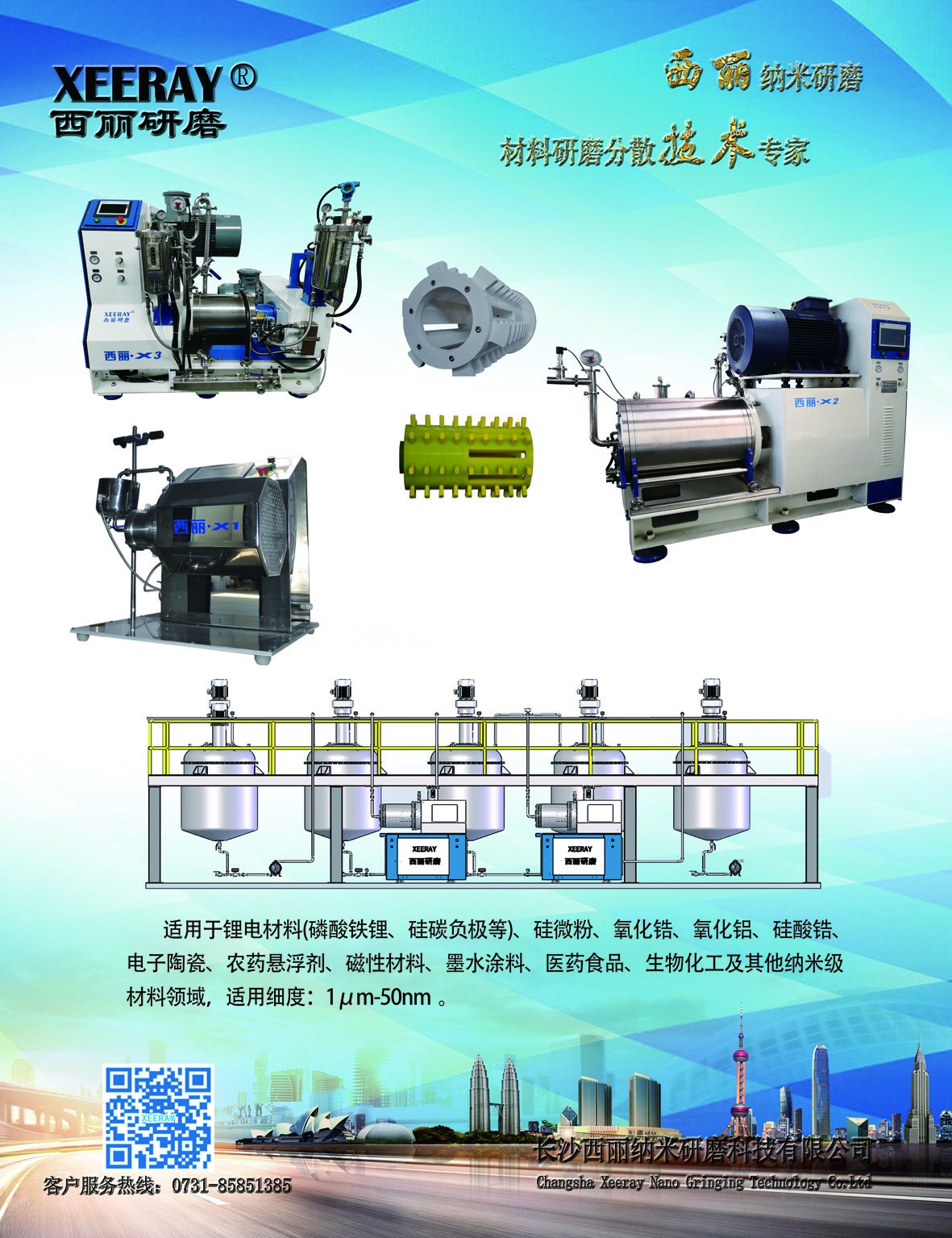 長沙西麗納米研磨科技有限公司是一家主要從事破碎、球磨直至納米級分散研磨,集研發、生產和銷售為一體的高新技術企業。在納米研磨領域內擁有專業的研發團隊和精湛的制造工藝,專業為客戶提供從初始物料狀態到納米級分散研磨的一站式解決方案!產品主要適用于鋰電材料、硅微粉、電子陶瓷、結構陶瓷、磁性材料、墨水涂料、醫藥食品、生物化工及其他納米級材料領域。