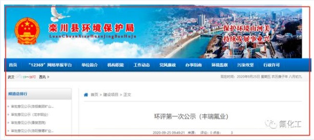 中國粉體網訊 近日,欒川縣環境保護局發布了洛陽豐瑞氟業有限公司螢石礦高效綜合循環利用項目環境影響評價第一次公示。
