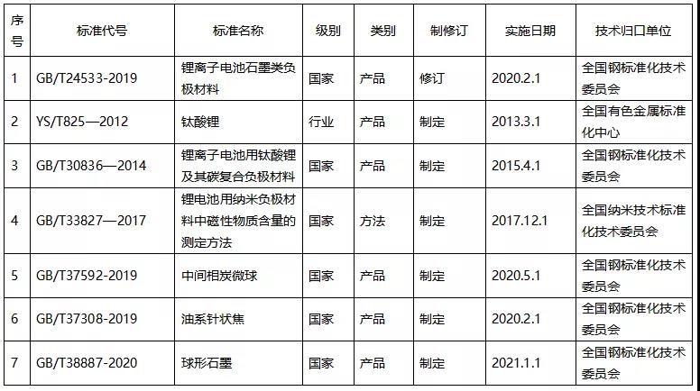 中國粉體網訊 為了促進鋰電行業的健康發展,我國從2009年開始就陸續頒布了相關標準,鋰離子電池負極材料的相關標準也在持續制定發布中。截至目前,我國已頒布的鋰離子電池負極材料相關標準有7項,我國正在制定或修訂的鋰離子電池負極材料相關標準有軟炭、硅炭2項。