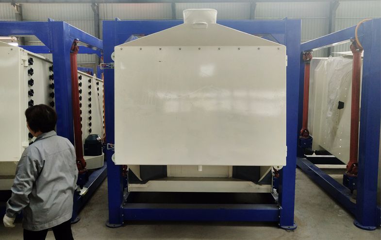 方形搖擺篩是三圓堂公司為了滿足大產量、高密度的篩分要求,而特殊設計的一種多用途新型高效篩分設備。由于結構和工作原理的獨特性,使得搖擺篩特別適用于對微粒狀物料和微細粉物料的篩分處理。其全新的設計理念和獨特的結構,使之成為手工篩分作業的篩分設備,巧妙的把篩--(平面圓周運動)、簸 --(向上拋物運動)結合起來,可通過調整經向角和切向角,改變物料在篩面停留時間和運動路線,達到最佳篩分效果。三圓堂方形搖擺篩成功的模擬了人工篩分運動的有效原理 (篩分精度、效率、篩網壽命均是常規圓篩的5-10倍)。