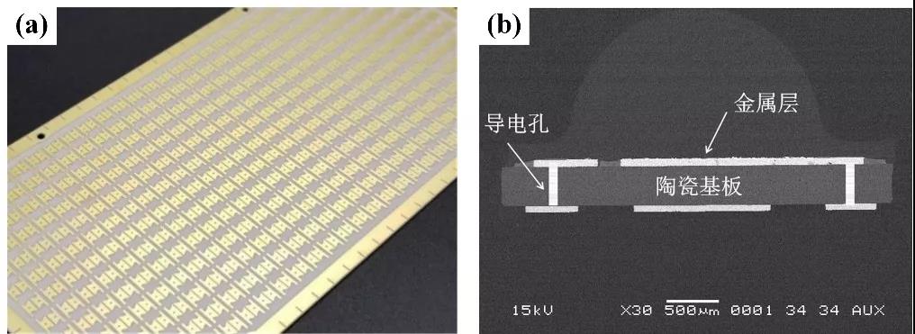 圖2 (a) DPC陶瓷基板產品及其 (b) 截面圖