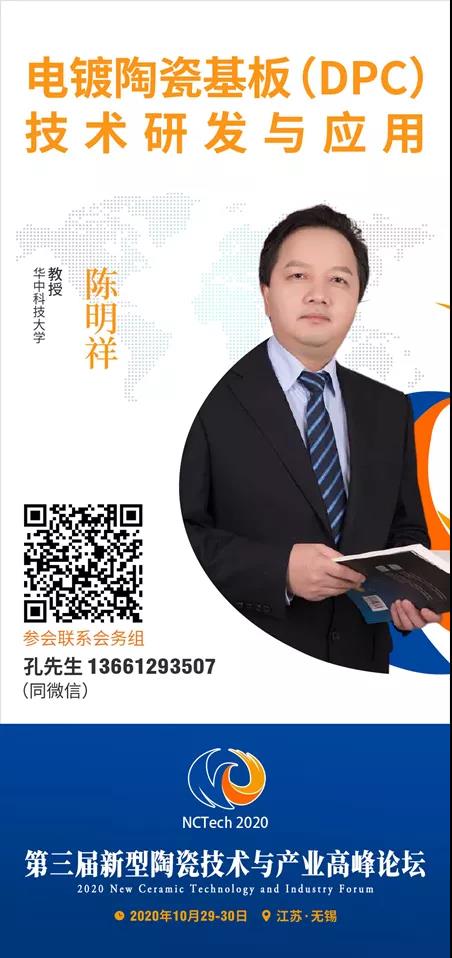 想要了解更多關于電鍍陶瓷基板的詳細內容,敬請期待中國粉體網將于2020年10月29-30日在無錫舉辦的“2020第三屆新型陶瓷技術與產業高峰論壇“。屆時,華中科技大學教授、武漢利之達科技創始人陳明祥將帶來題為《電鍍陶瓷基板(DPC)技術研發與應用》的報告,為您答疑解惑。