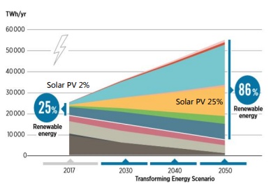 光伏是太陽(yáng)能光伏發(fā)電系統(tǒng)的簡(jiǎn)稱,是一種利用太陽(yáng)電池半導(dǎo)體材料的光伏效應(yīng),將太陽(yáng)光輻射能直接轉(zhuǎn)換為電能的一種新型發(fā)電系統(tǒng),有獨(dú)立運(yùn)行和并網(wǎng)運(yùn)行兩種方式。光伏發(fā)電和風(fēng)電將引領(lǐng)全球電力結(jié)構(gòu)的轉(zhuǎn)型,2050年光伏發(fā)電在電力結(jié)構(gòu)中的比例將由2018年的2%增長(zhǎng)至25%。