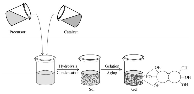 溶膠–凝膠過程示意圖(來源:張澤,等:氣凝膠材料及其應用)