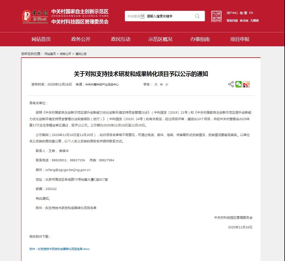 此外,對于在實施過程中取得重大突破、進入成果轉化或產業化階段的項目,可按照《關于精準支持中關村國家自主創新示范區重大前沿項目與創新平臺建設的若干措施》每年給予最高3000萬元的資金支持,累計支持金額最高1億元。